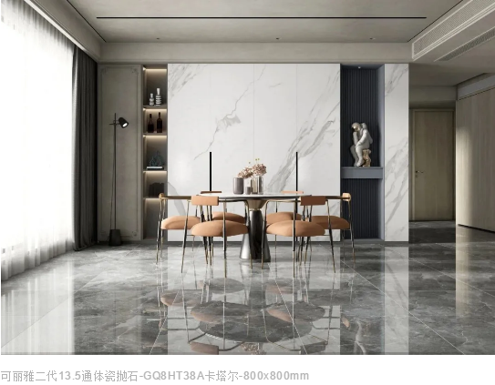 搭配暖灰色理石大板鋪貼地面