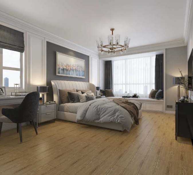 清爽的木紋瓷磚,絲絲縷縷的紋理雕琢著自然的痕跡,逼真得如同置身在原始森林般,予以人寧?kù)o的感受,提升睡眠舒適度。
