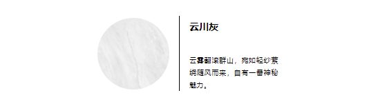 【云川灰】色如煙云縹緲,紋理豐富而深邃,恰似雨后的長白山,山色空濛,一明一暗間,碰撞出空靈與清冷的氣質。