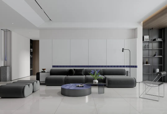 自帶高級氣場的西格莉,蜿蜒流淌的白色裂紋結合自由連紋設計,宛如連綿起伏的山脈穿梭于空間之中,加入金屬元素作為點綴,勾勒出輕奢家居潮流的新風尚。