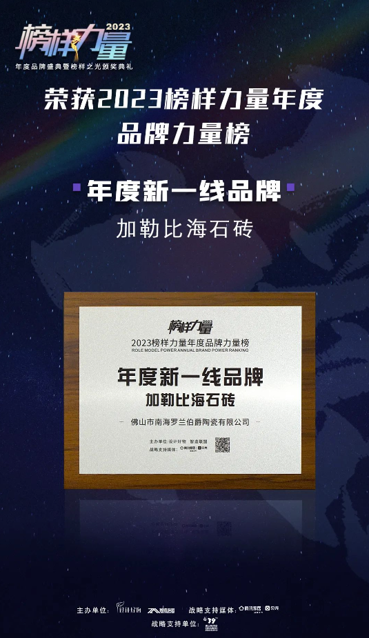 實力見證!加勒比海石磚獲“年度新一線品牌”榮譽稱號